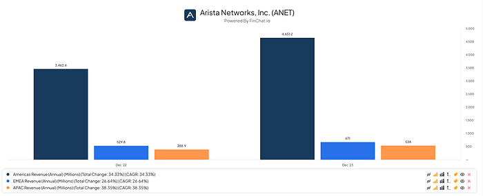 Arista Networks est donc fortement dépendante des résultats qu’elle produits aux États-Unis ainsi que par la vente de son matériel réseau.