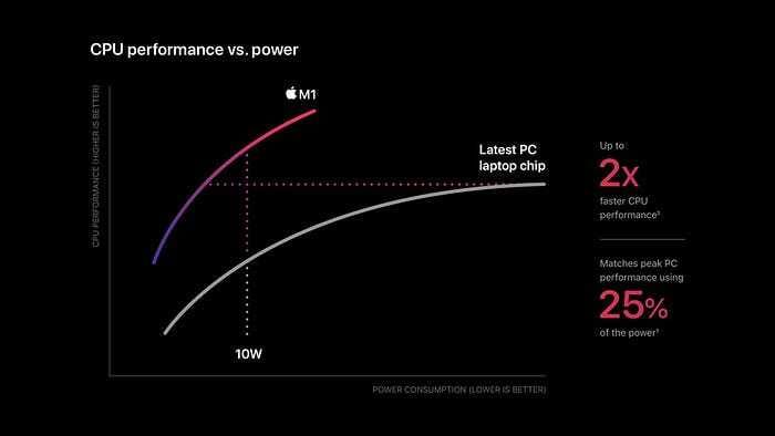 Image d’illustration Apple des performances des Macs M1 vs Macs Intel
