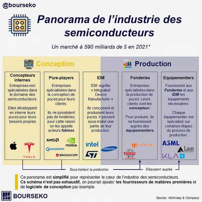 Les fondeurs, ceux qui possèdent les usines où l’on fabrique les puces tels que TSMC notamment