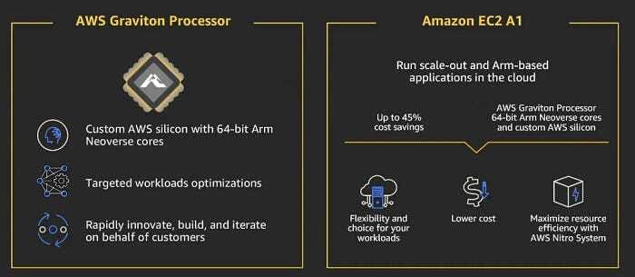 Par exemple, AWS propose depuis quelques années des serveurs qui sont équipés de processeurs Graviton, basés sur la technologie d’ARM. Ces processeurs sont souvent beaucoup moins chers (on compare ici le ratio performance / prix) que leurs homologues sous x86/AMD64.