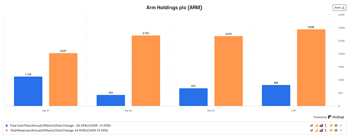 Cela s’explique notamment par de forts investissements de la part d’ARM mais aussi des changements dans les comptes débiteurs (ARM devait plus d’argent en 2022 qu’en 2021).