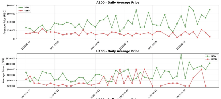 Les prix sont relativement stables et les GPUs se revendent très bien, même utilisés, même vieux de 3 ans (c’est le cas pour la H100). Une H100 d’occasion se revend dans les 20k$ soit une décote d’environ 20 à 35% de son prix neuf, loin des chiffres annoncés par Michael Burry.